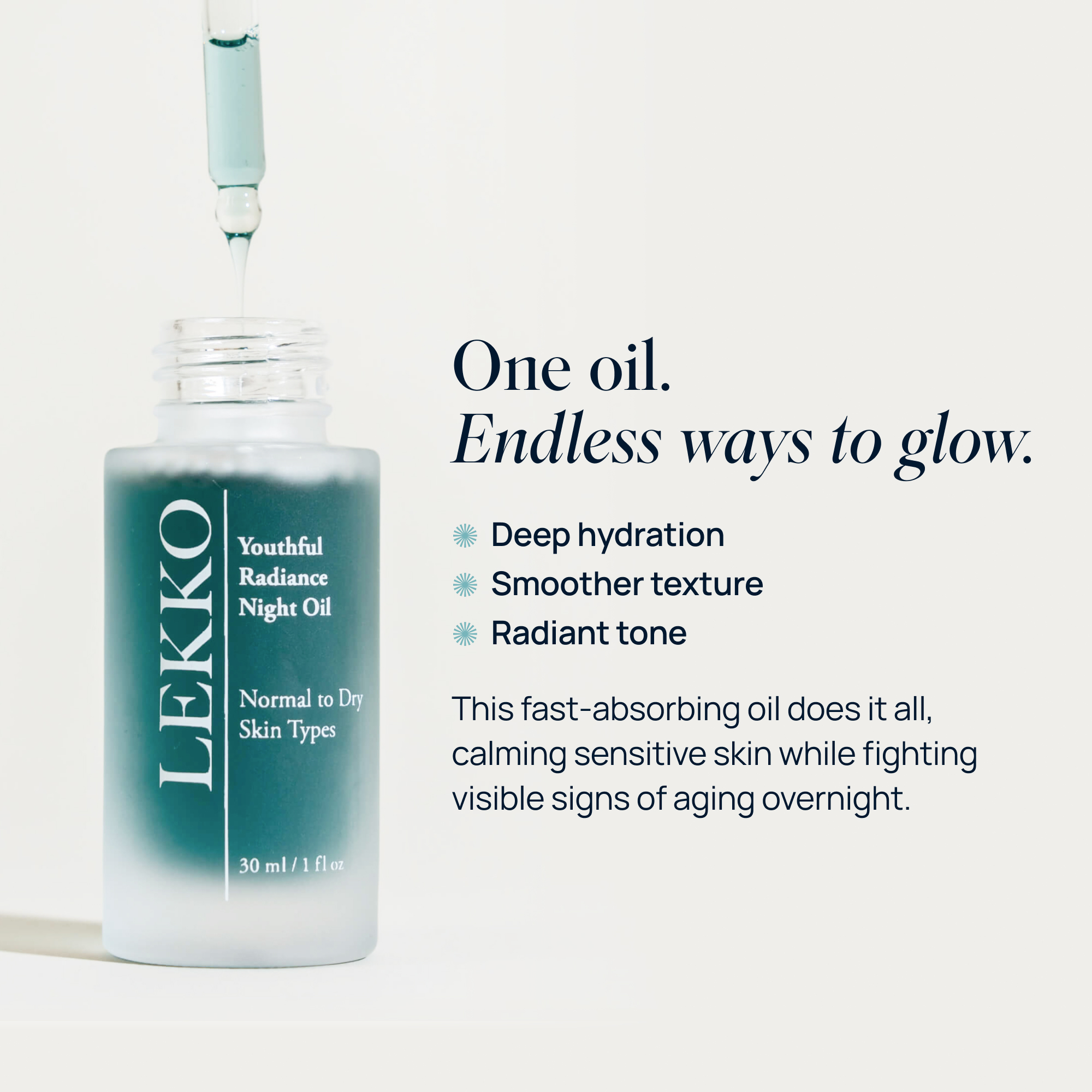 I received a sample with my last order and I can’t wait for the official release! I love the smell and how beautiful it makes my skin look and feel! For my nightly routine, I like to layer the Radiance Oil over Alpha Arbutin, which can be tacky. The Radiance oil glides right over it. Thank you Lekko, I am in love with my radiant youthful skin because of your Youthful Radiance Night Oil!!!